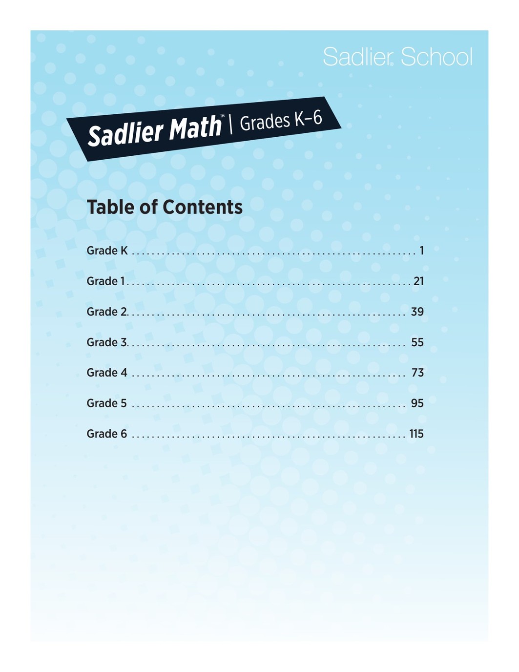 Sadlier Math Table Of Contents